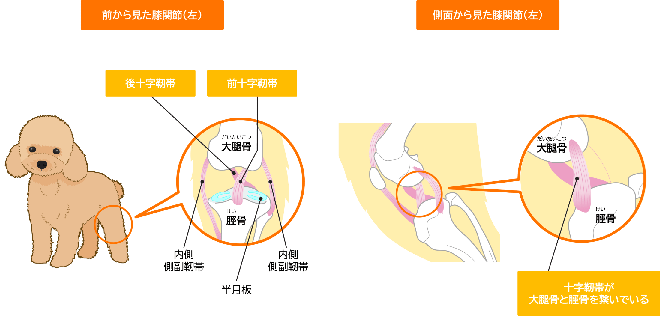 膝蓋骨脱臼は、左右両方ともなっていることも少なくないため、当院では小型犬については両側同時に手術を実施しております
