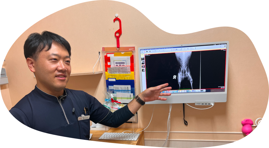 6カ月齢の時にフィラリア予防で当院に初診で来院されました。その際に膝蓋骨内方脱臼グレード2を確認し、手術をお勧めしました。症状がなかったことから、飼い主さまは手術を望まれず、生活環境を整えていただくアドバイスをし、様子をみていくこととなりました。